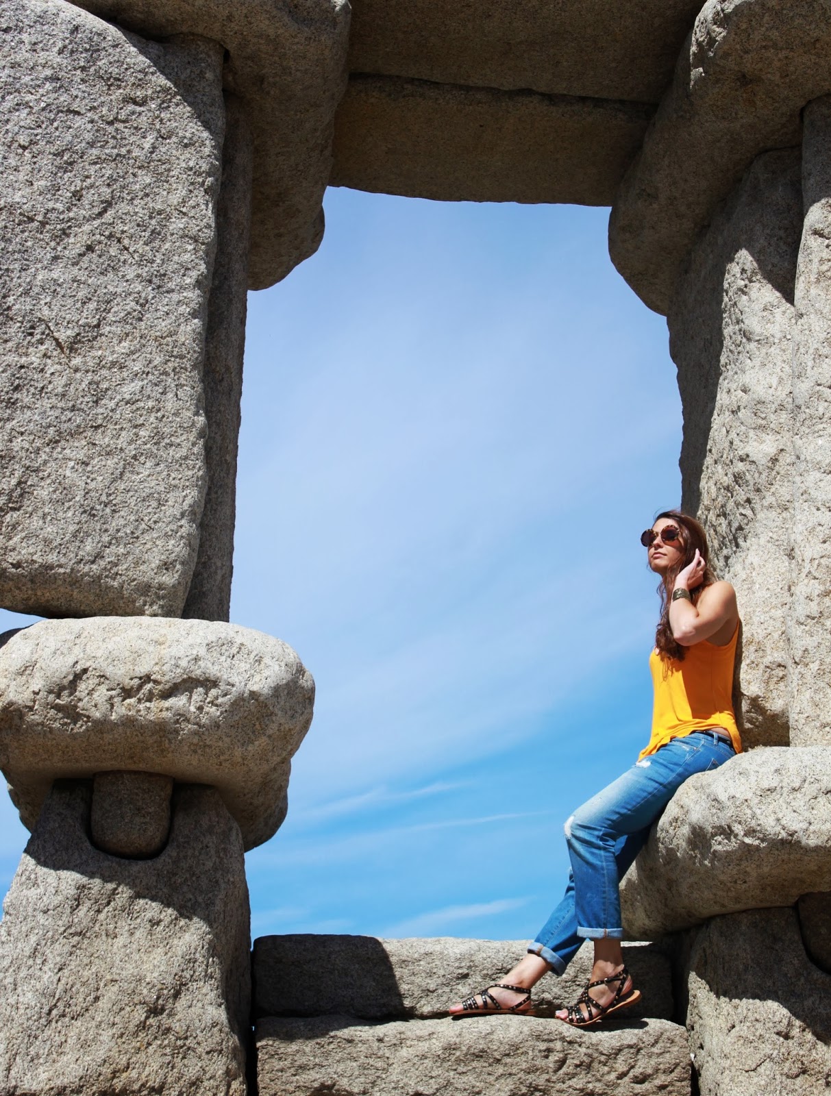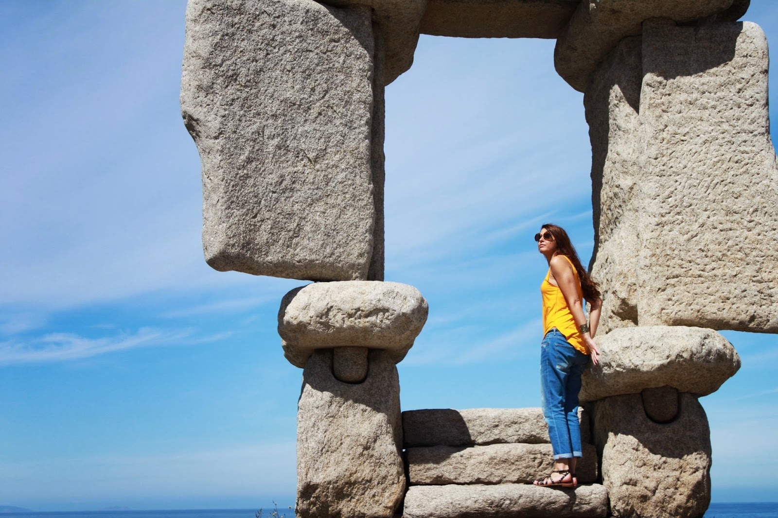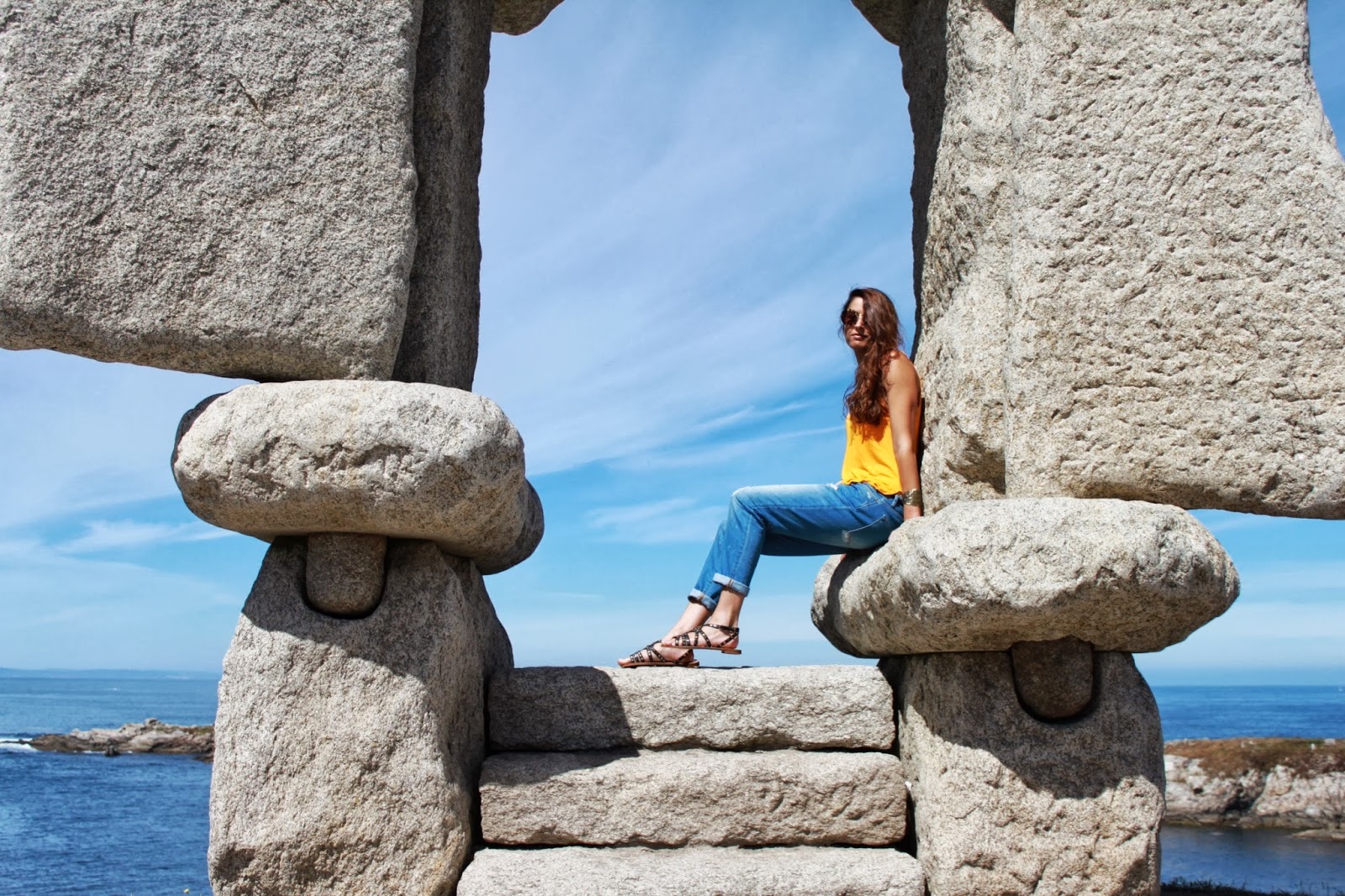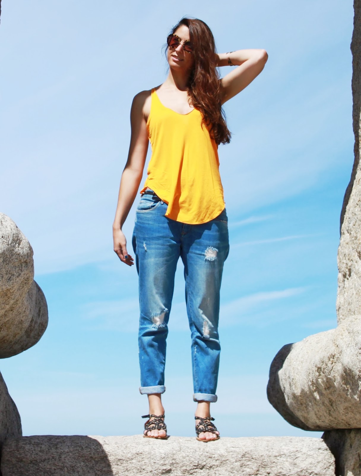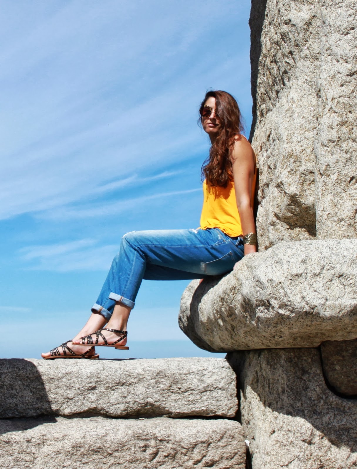 Buenos días desde el fin del mundo! O casi. En realidad estoy bastante cerca de casa, en una ventana al oceáno Atlántico con unas vistas que vosotros mismos podéis juzgar. Como también espero que me contéis que os parece el outfit de hoy: boyfriends con camiseta mostaza y sandalias. Poco equipaje, pero más que suficiente para un espléndido día de verano, ¿no estáis de acuerdo? Besos y muchas gracias por vuestras visitas y comentarios. Os espero en Bloglovin y en Facebook
