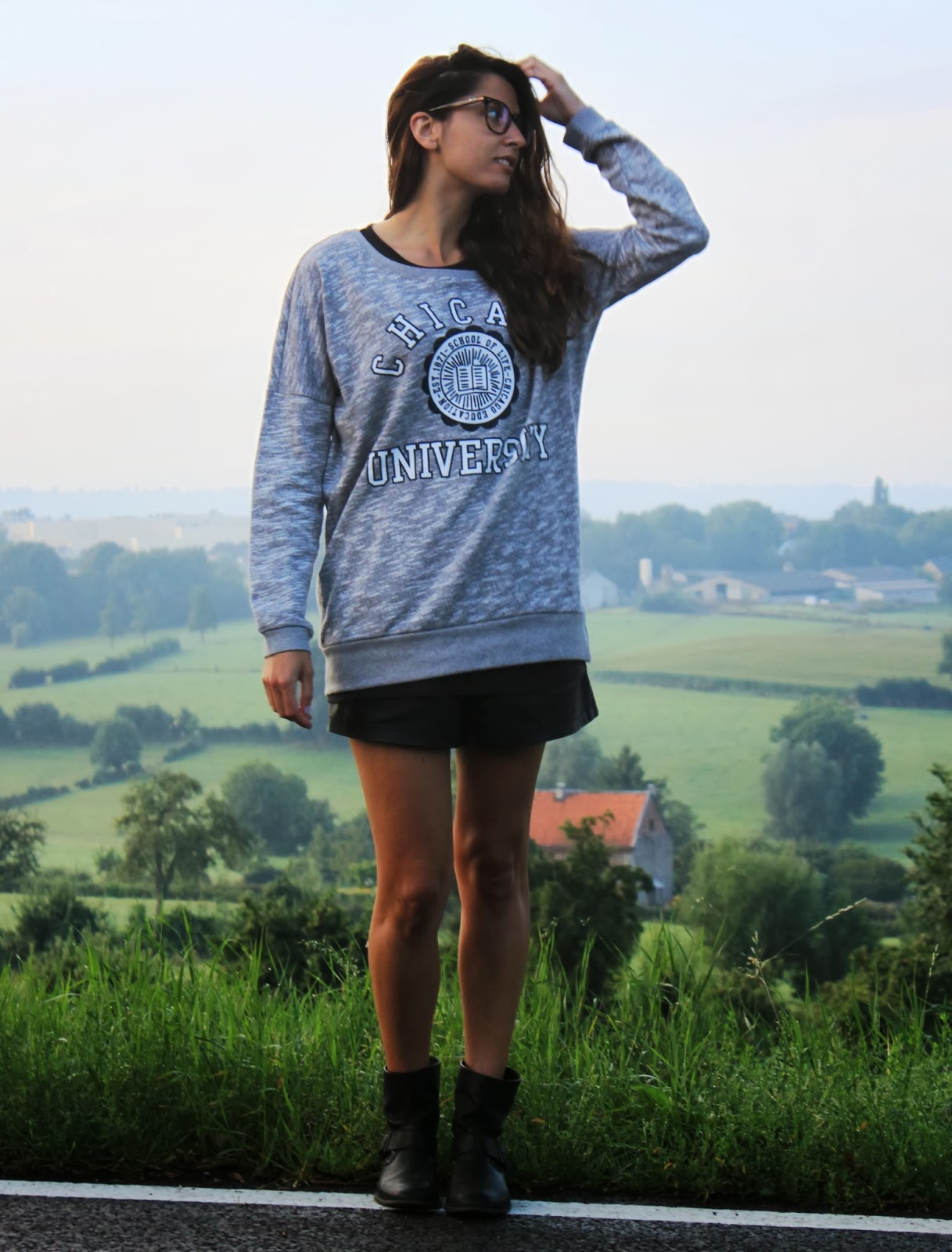 In our way to the Spa circuit, in Belgium, we stopped the car to take these photos with an university look, with Only sweatshirt and Zara black shorts. What you see in the background is the Belgian village of Aubel, on the border with the Netherlands, one of the towns that was part of our daily route to Francorchamps. The last picture was in our hotel at Slenaken, a wonderful place, perfect for cycling enthusiasts. Hope you like it! Kisses and thank you for your visits and comments! See you on Bloglovin!