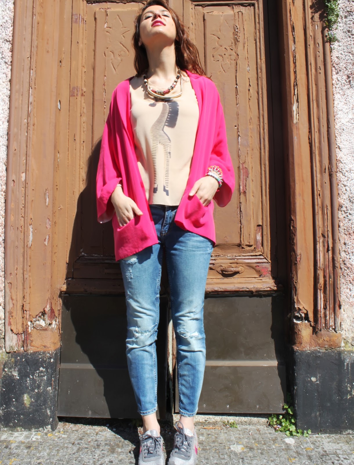 Me encanta el fuscsia y como alegra los looks, el kimono no me puede gustar más, es precioso, besos